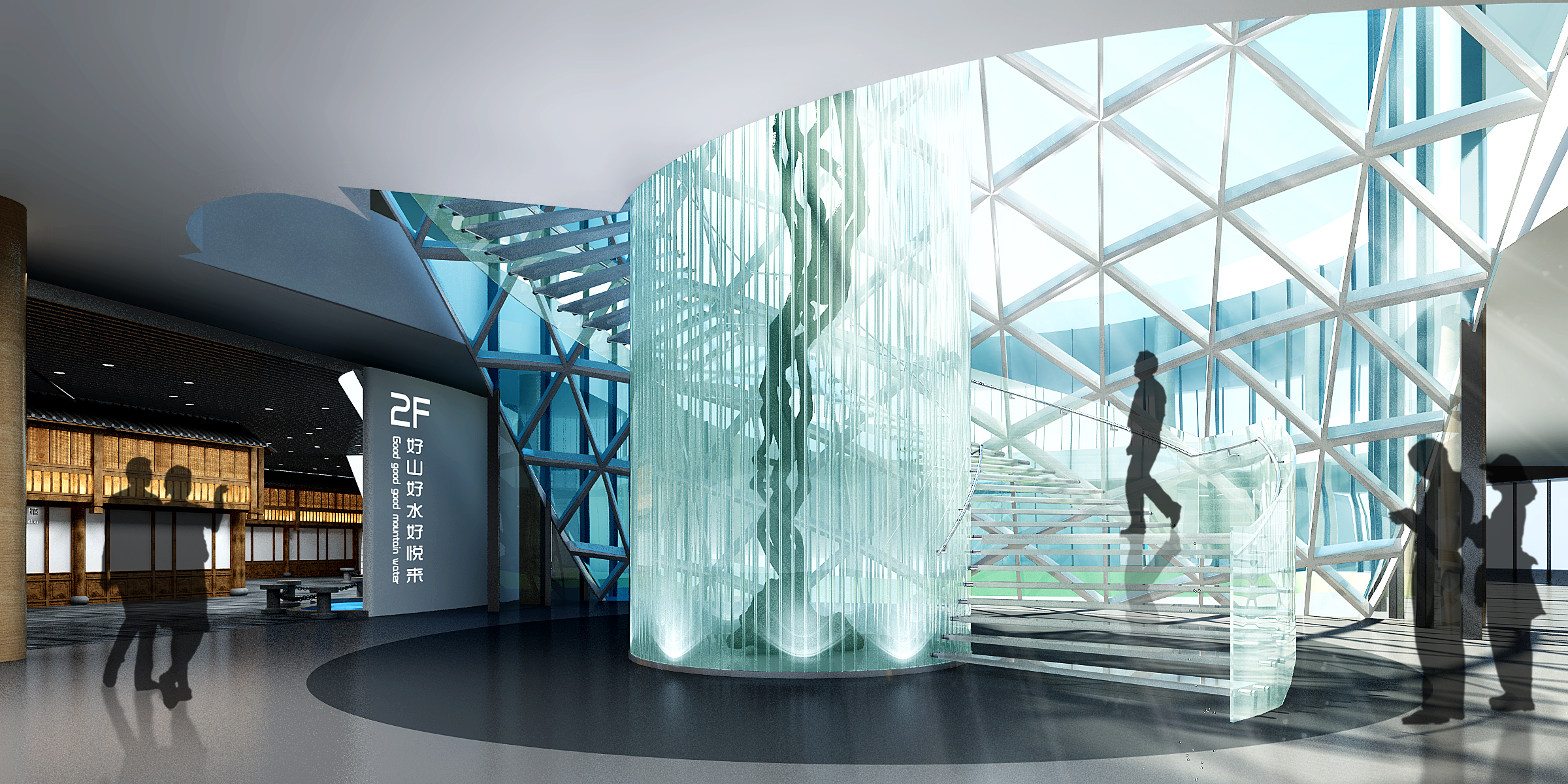 重慶仙桃國(guó)際數(shù)據(jù)谷展示體驗(yàn)中心,展廳主要布局了序廳、仙桃印象、規(guī)劃宏圖、創(chuàng)新平臺(tái)、綜合產(chǎn)品體驗(yàn)區(qū)、幻...